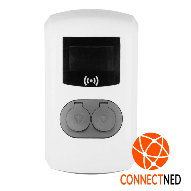De Double Pro-line van Alfen heeft een dubbel oplaadpunt met geavanceerde slimme functie voor semi- openbare ruimten. Met zijn robuuste behuizing is deze lader ontworpen voor intensief gebruik en kan hij zowel aan de muur als op een paal worden gemonteerd. De lader is voorzien van een geïntegreerde RFID-lezer, die de gebruikersidentificatie ondersteunt en heeft een MID-meter voor verrekening van transactiekosten. Verder heeft de gebruiksinterface een kleurendisplay, die configureerbaar is in verschillende talen en met de mogelijkheid een logo te uploaden. De AL-8720161296921 is voorzien van ConnectNed backoffice.