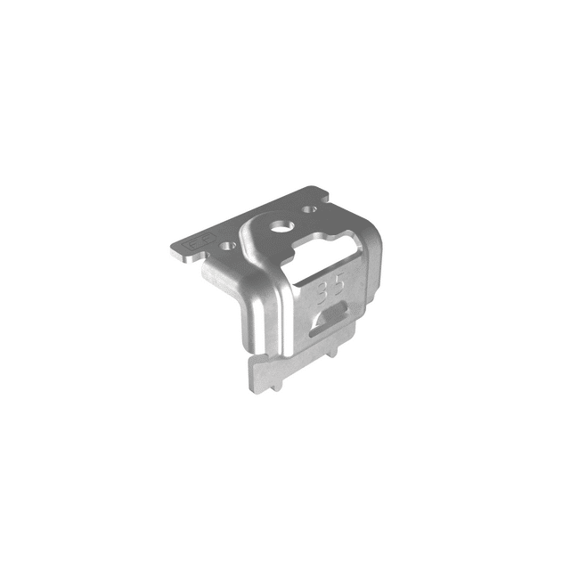 De aluminium FlatFix eindklem van Esdec wordt gebruikt om de panelen op een plat dak vast te klemmen. De eindklem wordt op de rand van het laatste zonnepaneel in een rij bevestigd met een montageschroef in de montagegaten van de hoge en lage basiselementen. De klem is verkrijgbaar in verschillende diktes. De FF100-4335 heeft een dikte van 35mm.